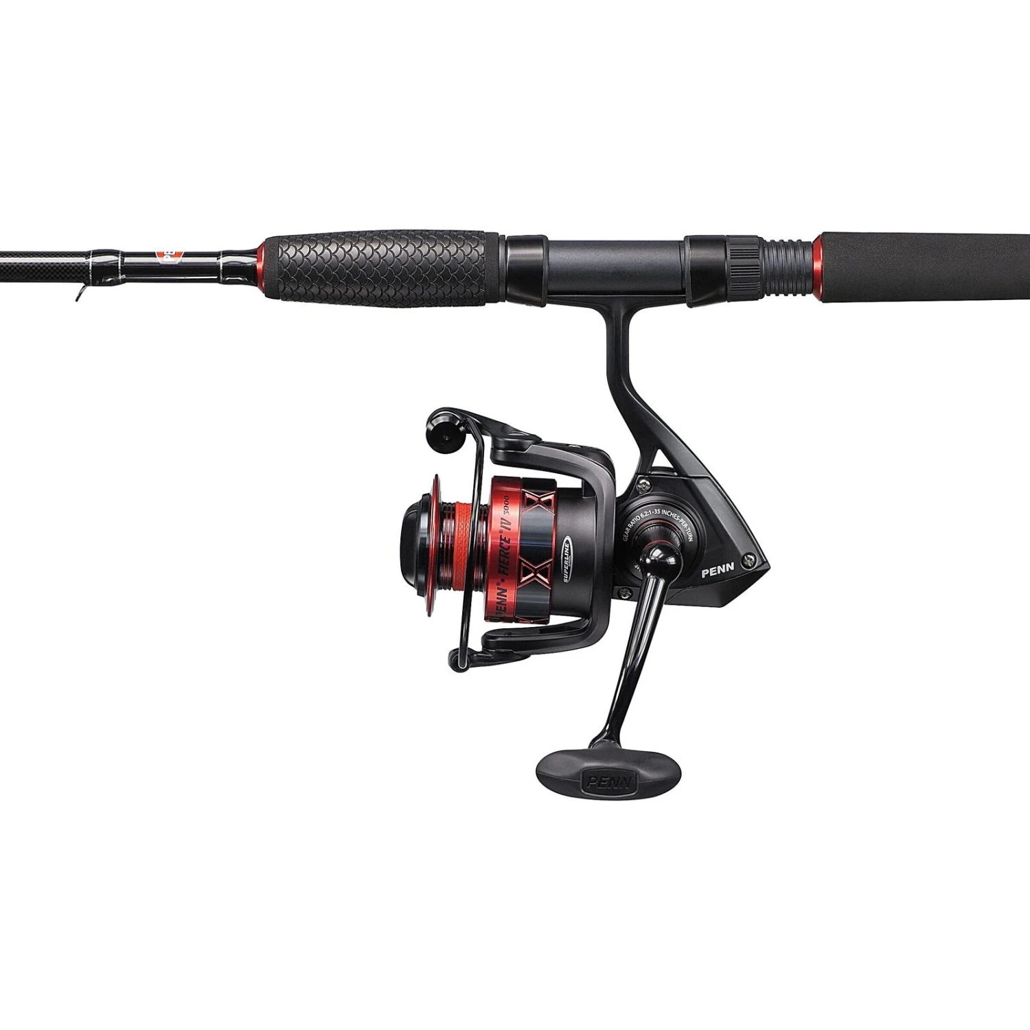 Betrouwbare kracht voor uw zoutwaterexploitaties, tegen een betaalbare prijs. De PENN® Fierce® IV Spinning Combo is een perfect op elkaar afgestemde opstelling die is ontworpen om u in elke situatie de overhand te geven. De PENN Fierce IV Spinning Reel heeft een robuuste volledig metalen behuizing en zijplaten, een Techno-Balanced™-rotor voor soepele prestaties onder alle omstandigheden, een heavy-duty aluminium beugel en een gevlochten spoel met lijncapaciteitsringen. Het 4+1-systeem beschikt over duurzame afgedichte roestvrijstalen kogellagers en Instant Anti-Reverse, ondersteund door de opvallende kracht van Penn’s premium ht-100 [?]