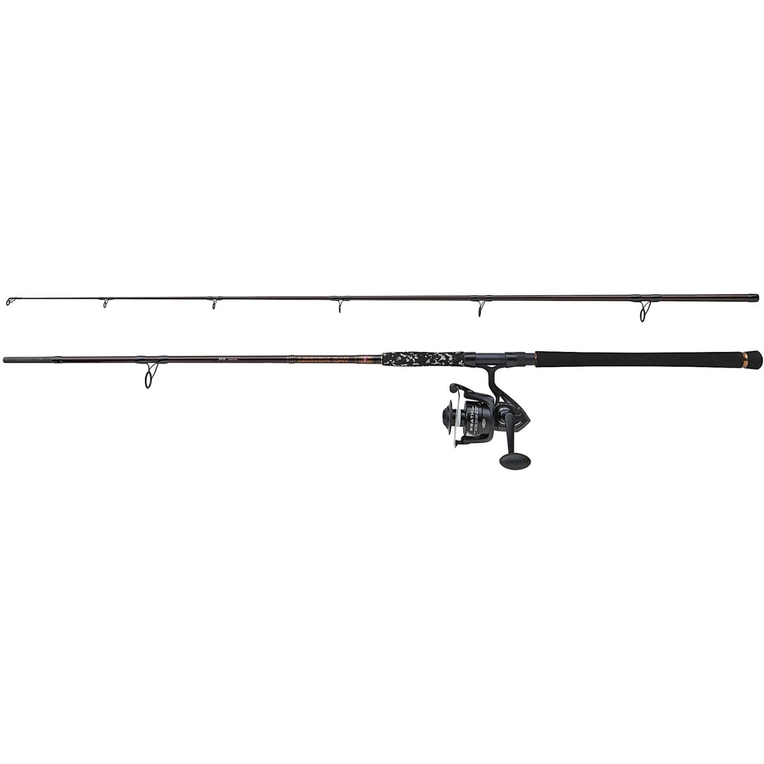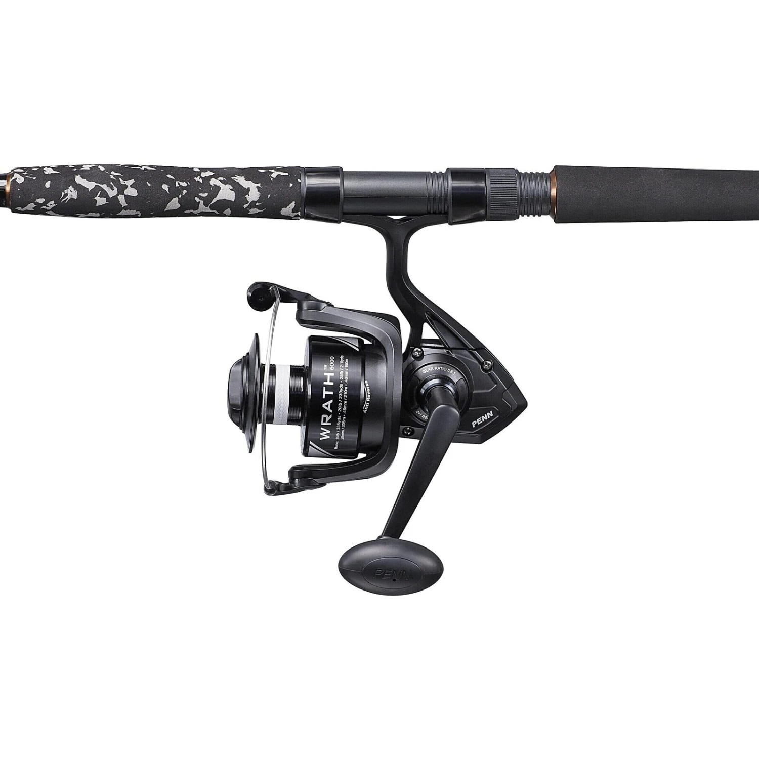 De PENN Legion Cat Bronze Spin-combo is ontworpen als een veelzijdige meerval-viscombinatie voor een betaalbare prijs. Legion Cat Bronze Spin heeft een speciale CAMO EVA-greep voor comfort en controle en de tweedelige blank van grafietcomposiet is uitgerust met roestvrijstalen SeaGuide-ogen voor extra duurzaamheid. De Limited Edition PENN® Wrath 6000-molen heeft een lichtgewicht en corrosiebestendige grafietbehuizing met een 2+1 roestvrijstalen lager systeem voor soepel binnenhalen. Deze Catfish-spinning-opstelling is klaar om de uitdaging aan te gaan om die monstermeervallen te temmen.